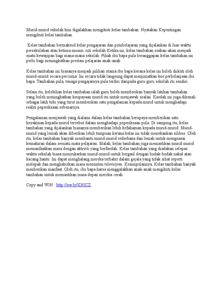 Tulis sebuah karangan yang bertajuk Faedah-faedah Mengikuti Kelas Tuisyen. Baca versi flipbook dari Contoh Karangan. Tingkatan 5 kertas 2 bahagian a.