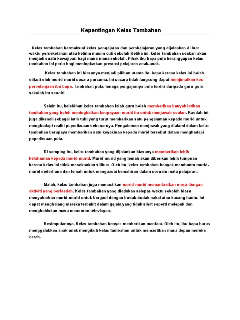 Karangan UPSR Murid-murid sekolah digalakkan mengikuti kelas tambahan. Soal pat pkn kelas 4 semester 2 kurikulum 2013. Contoh surat makluman kelas tambahan.
